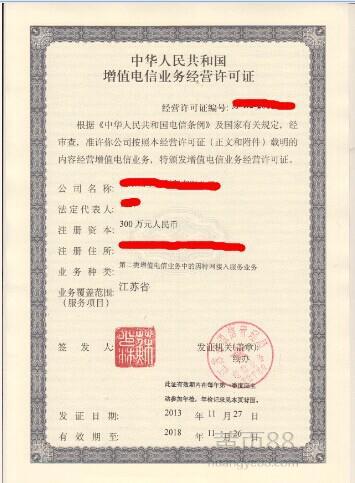 增值电信业务经营许可证,即ICP证。